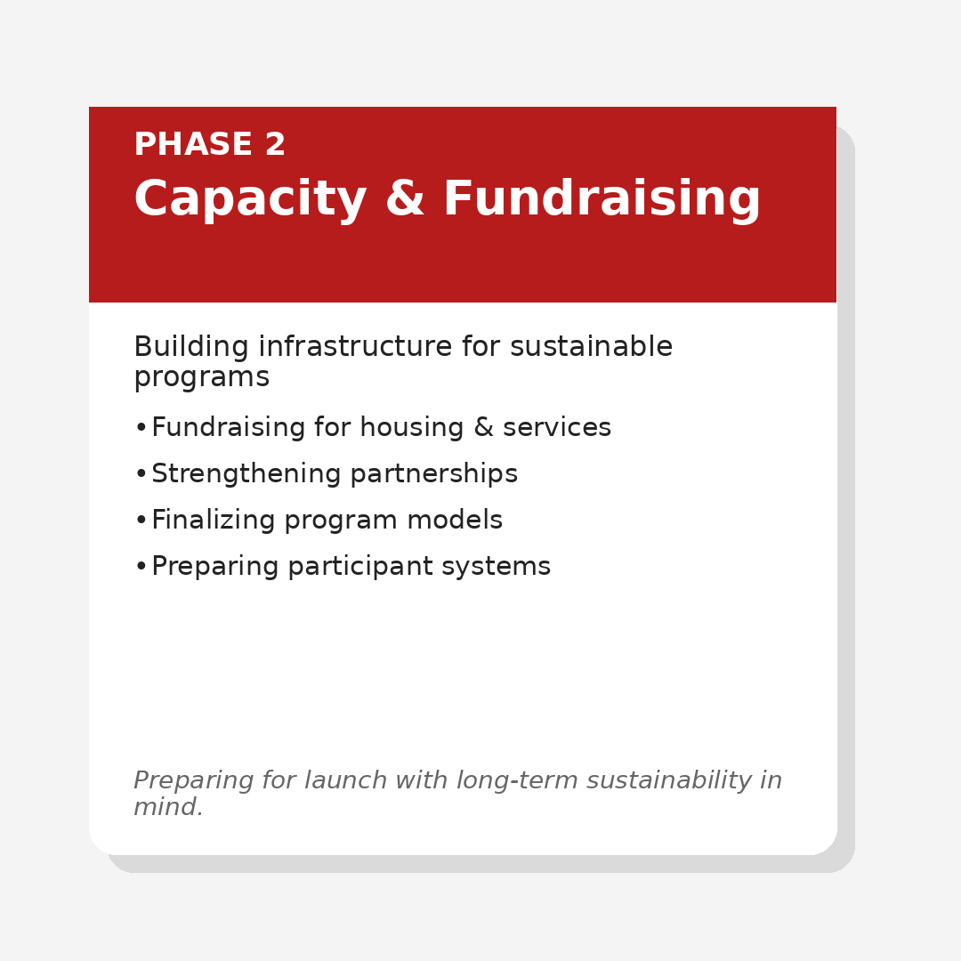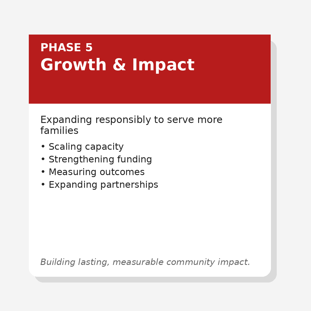 Healthy H.E.A.R.T.S. is currently in Phase 2 — building the capacity, partnerships, and funding needed to launch sustainable programs in August 2026.